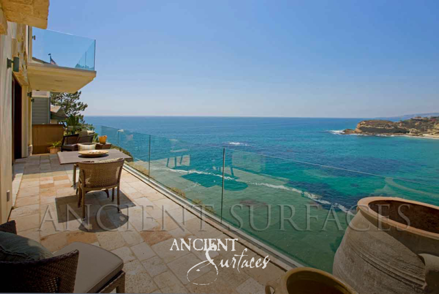This elevated terrace is finished entirely in Biblos limestone, where the stone’s soft beige tones and natural texture echo the surrounding coastal landscape. The subtly aged surface complements the expansive sea view, grounding the space with warmth while maintaining a refined, contemporary feel. Underfoot, the limestone’s gentle variation and timeworn character create a serene transition between architecture and horizon, making the terrace feel both luxurious and effortlessly connected to the Mediterranean setting.